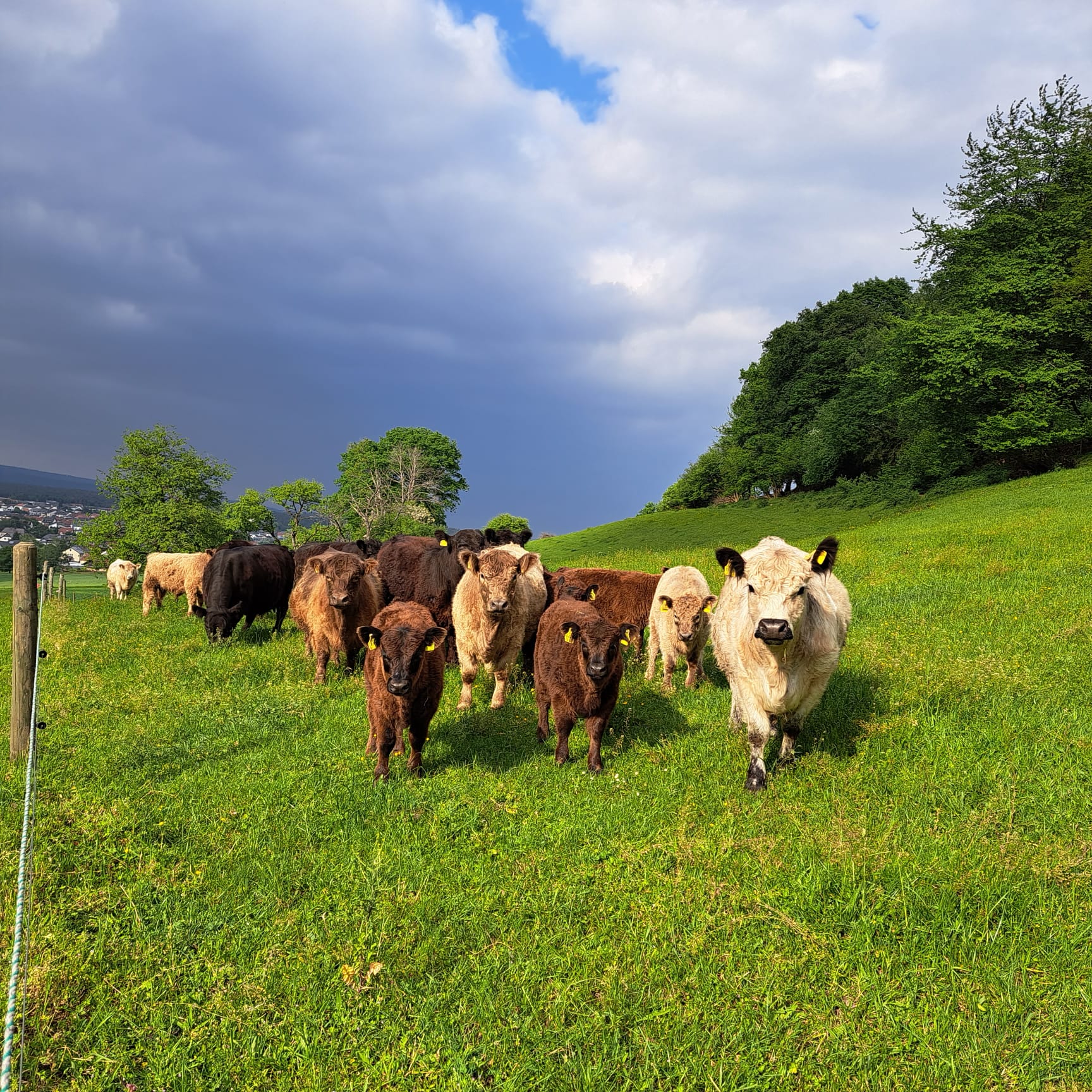 Zudem ist unser Fleisch bewusst nicht als Bio deklariert – denn Bio bedeutet nicht automatisch Weidehaltung. Bio-zertifizierte Betriebe dürfen ihre Tiere dennoch im Stall halten und sie beispielsweise auch mit Kraftfutter, Mais oder Getreide füttern. Für uns reicht das nicht aus: Wir legen besonderen Wert darauf, dass unsere Tiere tatsächlich in Freiheit leben, sich von frischem Gras, Heu und Grassilage ernähren und artgerecht auf der Weide gehalten werden – unabhängig von einem Bio-Label.