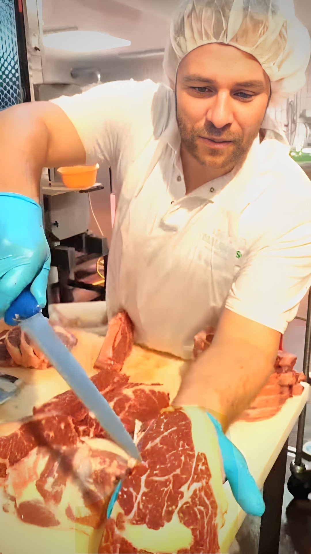Nach der Reifung wird das Fleisch von unseren erfahrenen Metzgern fachgerecht zerlegt, portionsweise vakuumiert und schockgefrostet.